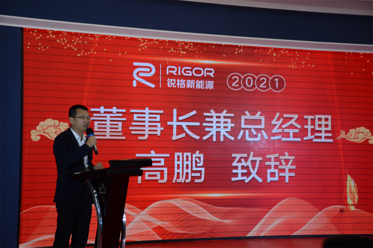 年會(huì)伊始,一段快閃拉開(kāi)了盛典的序幕。銳格新能源董事長(zhǎng)兼總經(jīng)理高鵬先生發(fā)表開(kāi)場(chǎng)致辭,他表示:“2021,這一年,不平凡,很偉大。銳格人用汗水、淚水及時(shí)間的研磨和忘我的堅(jiān)守及出色的表現(xiàn),鑄就了銳格的成就!”
