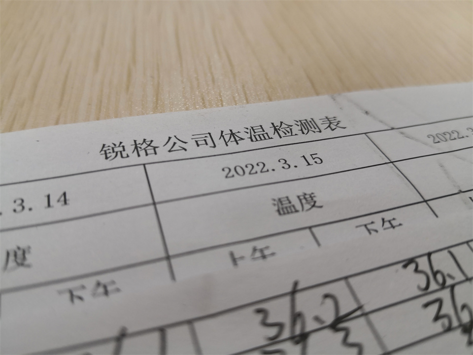 公司領(lǐng)導(dǎo)對(duì)疫情期間工作做了緊急部署,制定相關(guān)防疫政策,做好辦公區(qū)和生產(chǎn)車間的消毒,每日兩次員工測(cè)溫,外來(lái)人員測(cè)溫登記等,銳格人上下一心,保證生產(chǎn)的正常運(yùn)轉(zhuǎn),守護(hù)員工的生命健康。