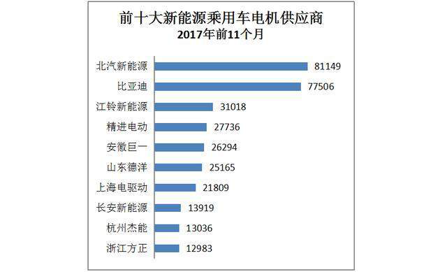 到目前為止,中國新能源汽車市場,無論整車還是核心零部件,還是自主品牌的天下。在新能源乘用車方面,2017年前11個月,電機出貨量45.43萬臺,其中自主品牌電機有41.89萬臺,占比92%;合資品牌聯合電子2.75萬臺,占6%;其余11家外資電機公司分享剩下的7958臺和2%的市場。